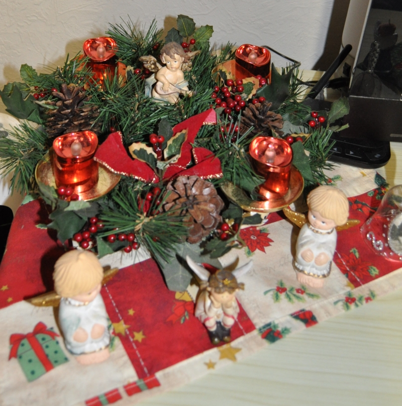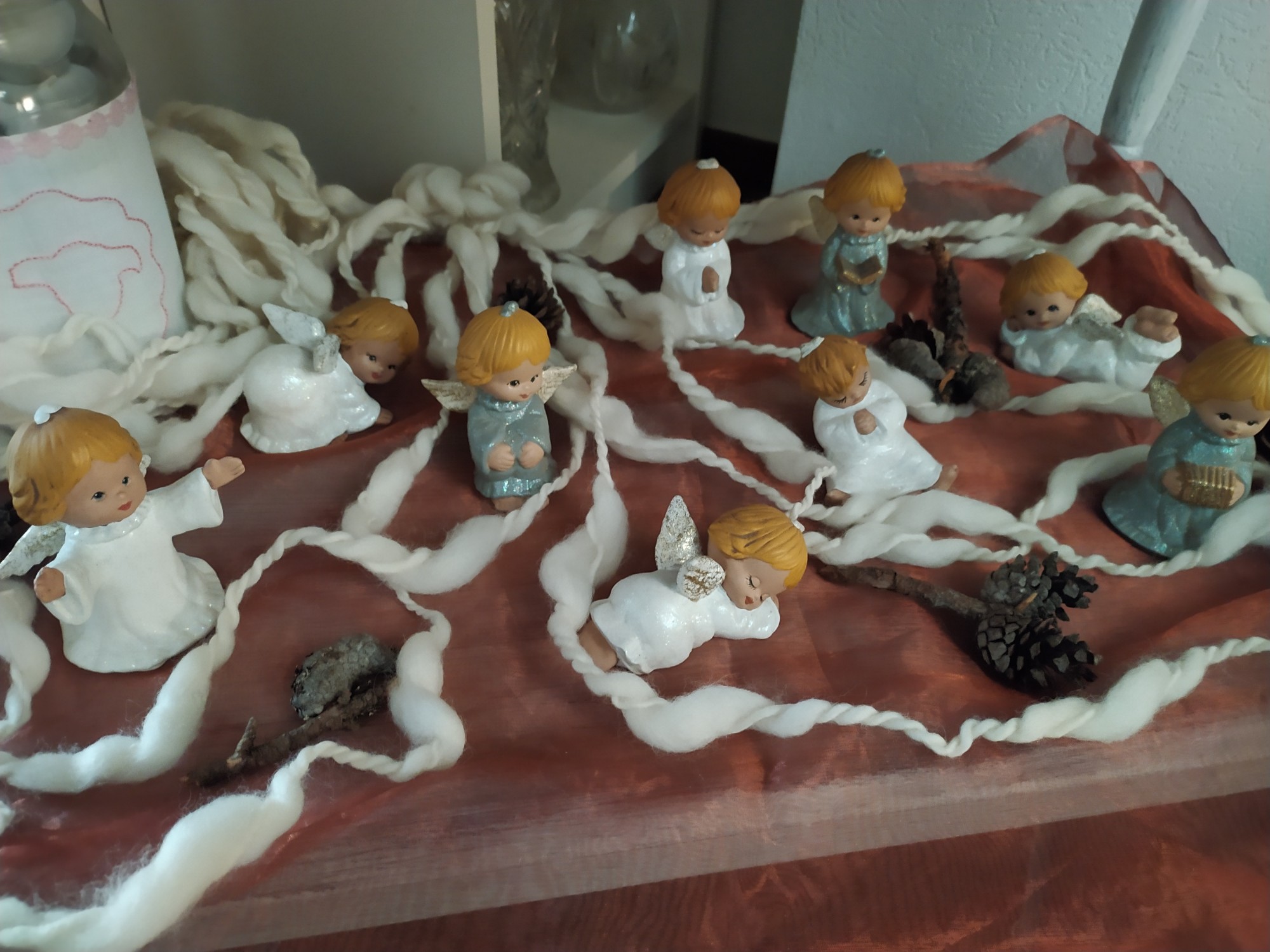 hab heute meine Engelparade wiedermal aufgestellt und meinen Adventskranz, ist ja nimmer weit bis 1. Advent einmal von oben und einmal als Draufsicht, ganz oben mein Kranz, bei mir kommen nur E-kerzen drauf aus Sicherheitsgründen