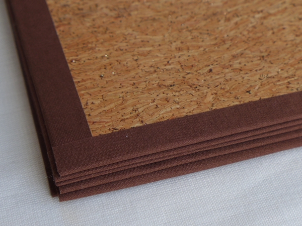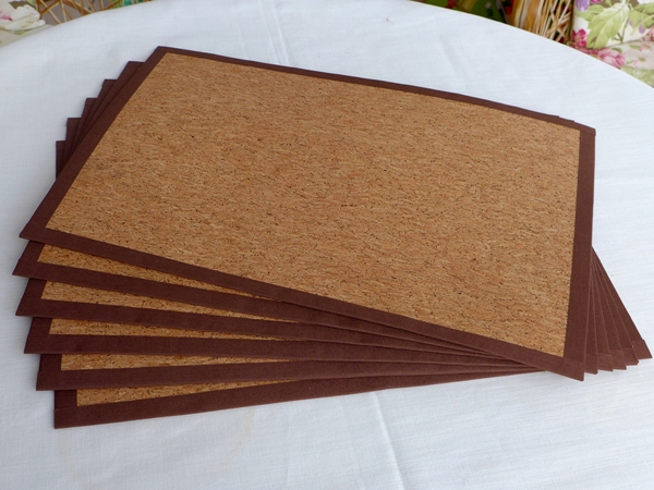Platzdeckchen aus dem Korkstoff umgesetzt. Der Korkstoff ist etwas dicker und hat feine goldene Glitzerpartikel eingearbeitet. Es ist echtes Kork, was es sehr angenehm macht, wenn man es anfasst. Und es ist nicht so glatt, so dass das Geschirr guten Grip haben wird.