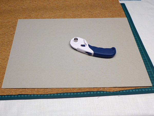 Zuerst habe ich mir eine Schablone (47 x 32 cm) gemacht. Dann die Schablone auf den Korkstoff bzw. das einseitig klebende Vlies (Vlieseline HH 650) gelegt und 6 x ausgeschnitten.