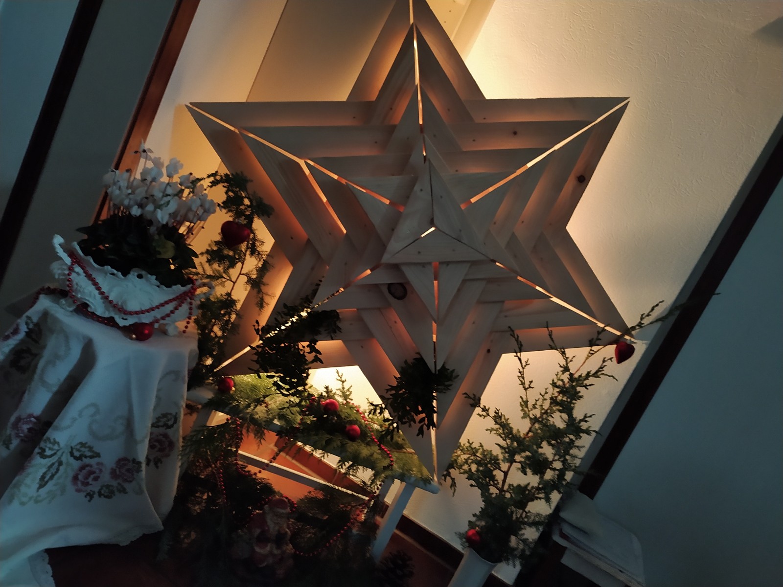 Der Weihnachtstern hängt, bis jetzt hatten sie kein Interesse. Nächste Woche wollen wir den Baum in der Stube aufstellen.