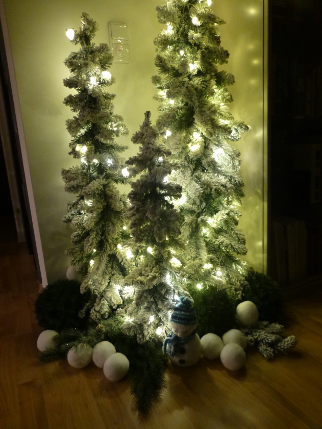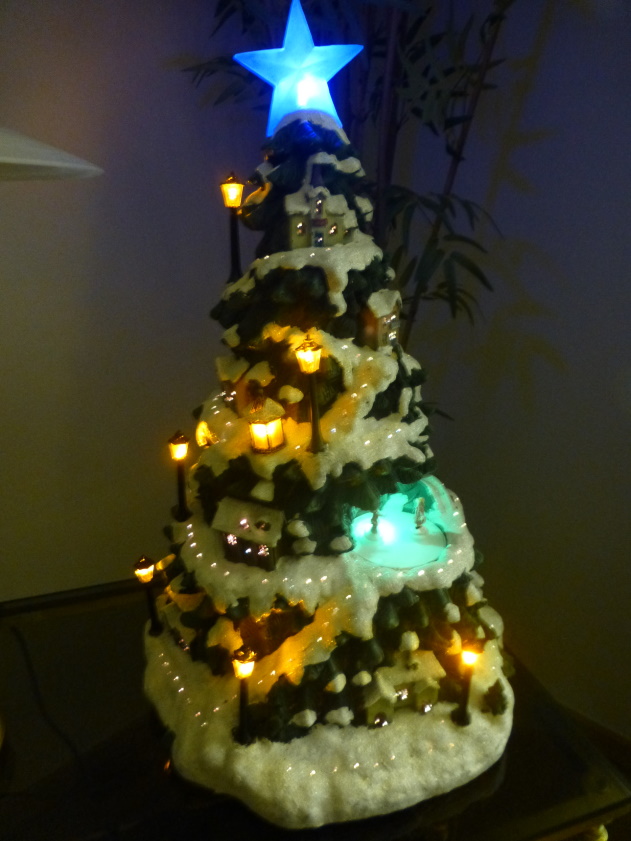 Unser Weihnachtsdorf ist ein bewohnter Tannenbaum, und auch mit der restlichen Deko komme ich voran, also hier mal Bilder für die fehlenden Tage: