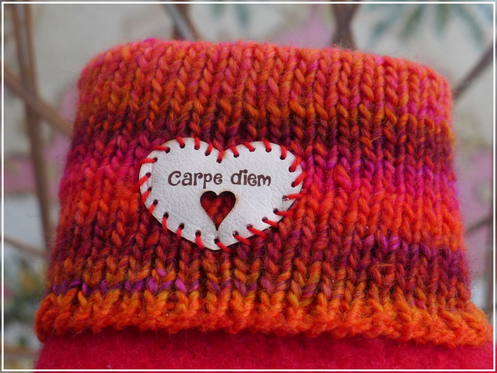 Beim Verpacken der gewünschten Filzstiefelchen für meine Freundin Andrea musste ich feststellen, dass ich sie noch nicht personalisiert hatte. Da Andrea eine Praxis für Entspannungskurse hat, hat sie natürlich auch einen Lieblingsspruch. Und den habe ich gerade auf ihre Stiefelchen genäht. So kann ihn jeder lesen und beherzigen.