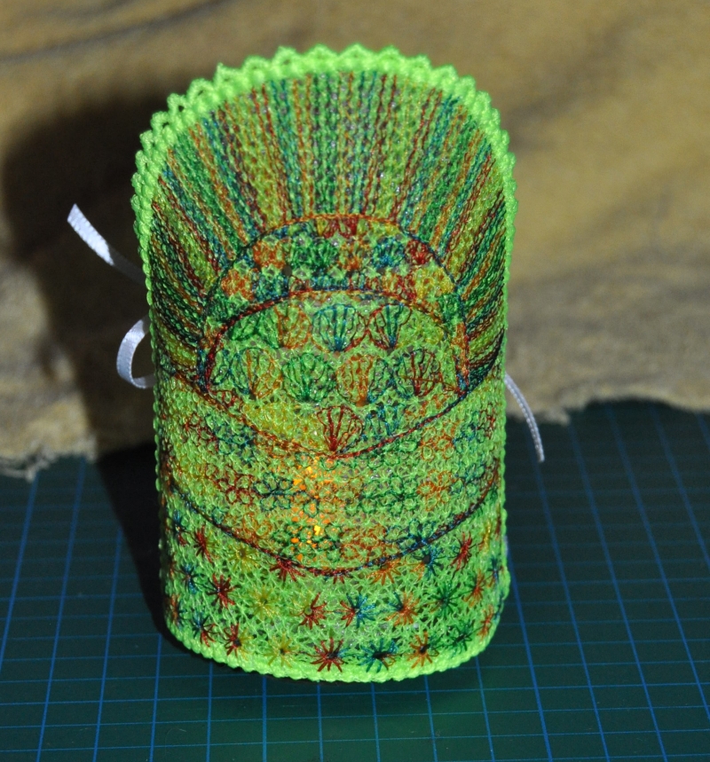 ..habe ich dieses Windlicht gestickt, es soll, wenn die Weihnachtsdeko abgebaut wurde, Farbe in mein Wohnzimmer bringen