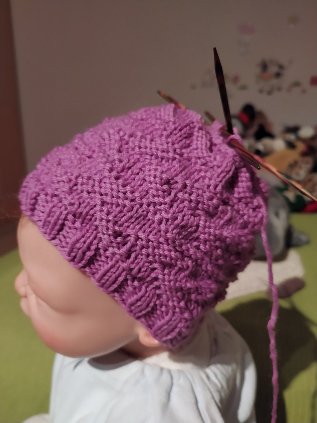 Ich habe mich für Reste entschieden und bin fast fertig mit einer baby Mütze und einem neuen Muster.