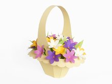 Schachtel mit schönen Margeriten lässt sich sehr bequem tragen.