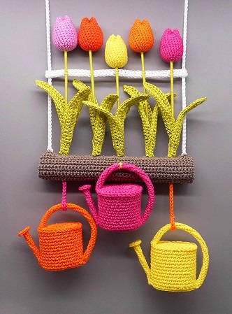 Die Hängedeko lässt sich auch von Anfängern mit etwas Übung nacharbeiten und natürlich kannst Du die Tulpen und die Gießkannen auch einzeln als Dekoration nutzen.