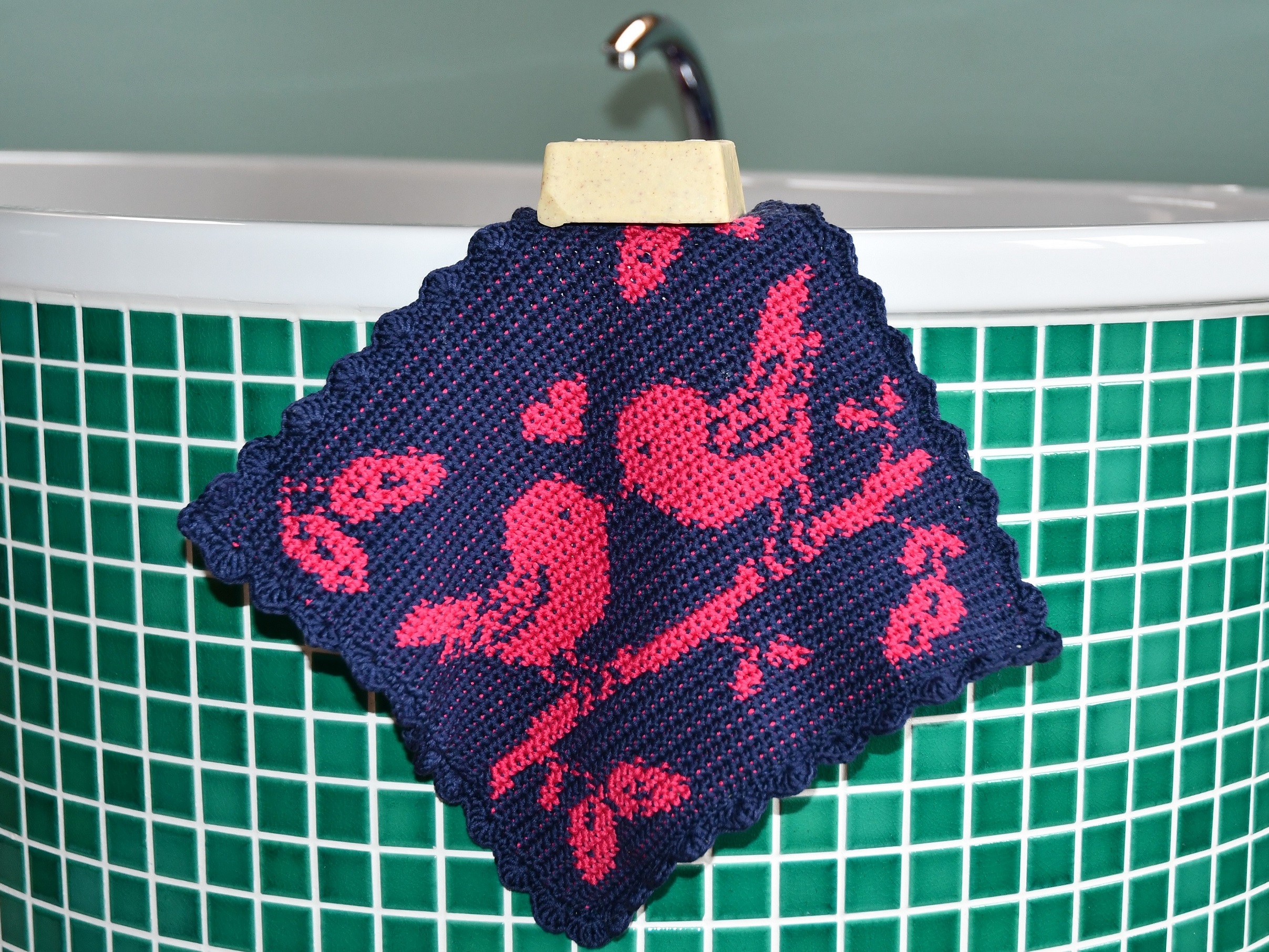 Häkelanleitung Tuch / Waschlappen "Love Birds"