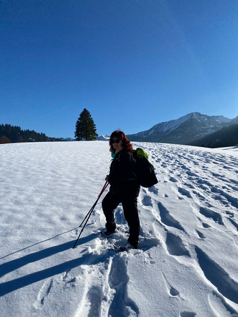 Da wir im Urlaub im Allgäu sind, haben wir Schnee, sogar Neuschnee.