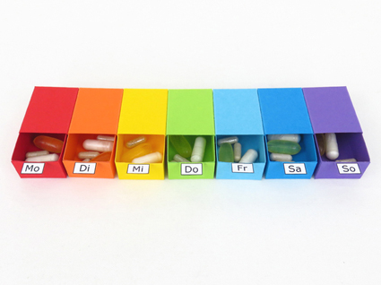 Wenn du täglich Medikamente, Vitamine oder andere Supplemente einnimmst, dann könnte dir diese einfache Pillenbox viel Stress ersparen: Nachdem du einmal pro Woche deine Tabletten, Kapseln oder Dragees in die Wochentage-Boxen deponiert hast, bleibt es dir nur noch, am jeweiligen Tag die richtige Box herauszuziehen und zu leeren.
