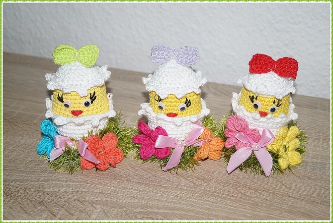 7) Dekoketten für einen fröhlich bunten Ostertisch - in einem Stück gehäkelt