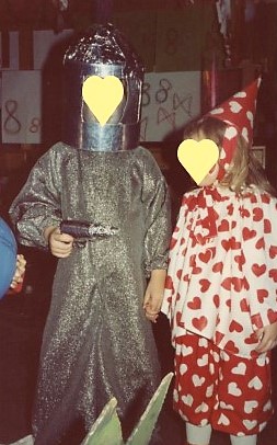 Astronaut und Clown für meine Kinder (vor über 40 Jahren). Damals war es gar nicht so einfach, so einen Glitzerstoff zu bekommen. Den Astronautenhelm hab ich aus einer Waschmitteltonne gebastelt - den hat mein Sohn den ganzen Tag aufbehalten! Die Laserpistole ist aus einer Klorolle gebastelt.