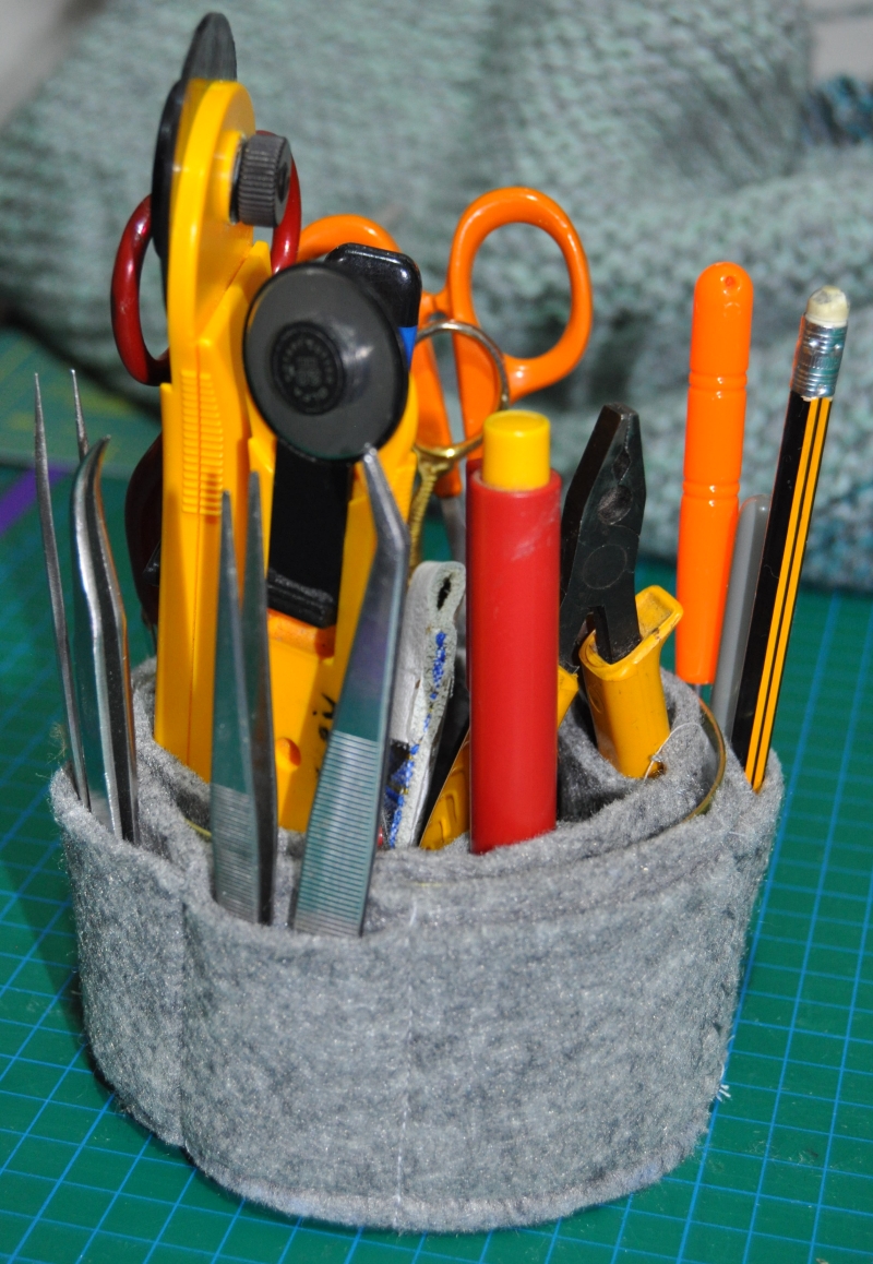 ich hab mit einem Werkzeugutensilo für mein Kleinwerkzeug das ich ständig brauche genäht,. Der ganze Kleinkram lag immer in einer Schachtel und jedesmal wenn ich was brauchte gibg das gewühle los, nun hab ich alles im Blick und ein Griff genügt.