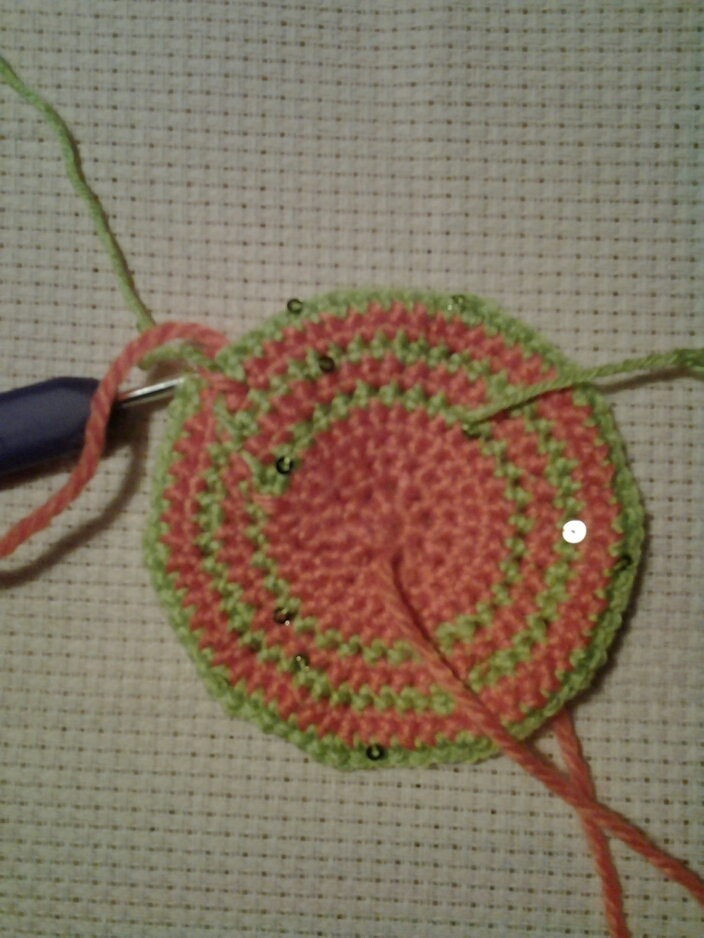 Ein Foto wäre wirklich hilfreich und nutzt du die neue Farbe erst ab der neuen Runde oder schließt du die alte damit? Also Holst du die neue Farbe zum Häkeln der Kettmasche.