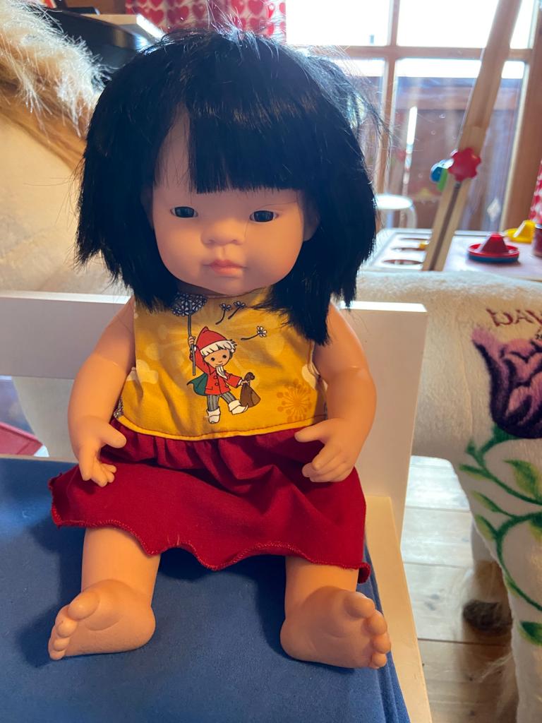 Ich konnte von Arbeit vor Coronazeit Stoffreste mitnehmen und da habe ich schon versucht einiges für Puppen zunähen.