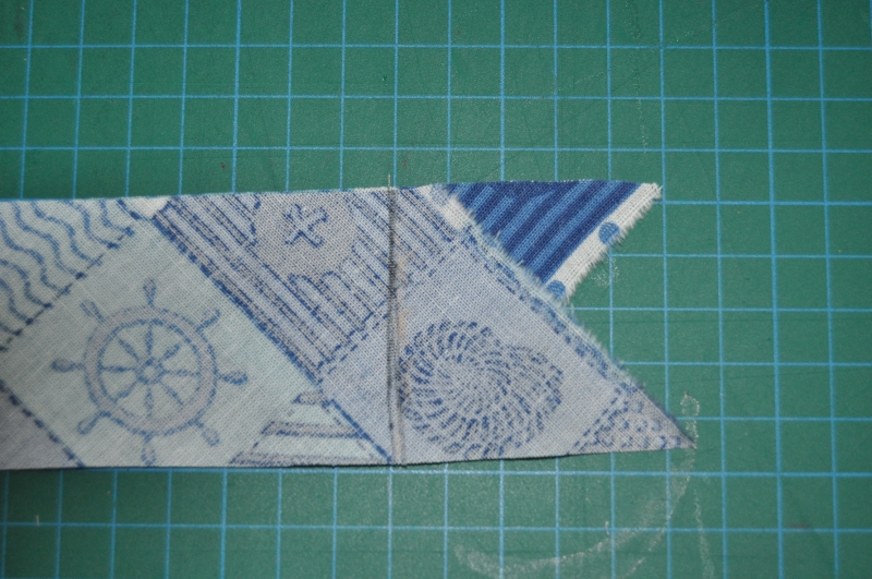 dann die Spitzen abschneiden so wie auf Bild 6, Streifen wenden und