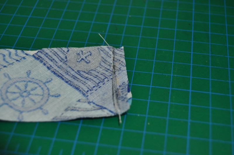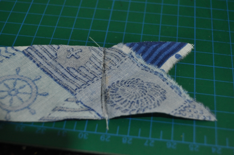 dann legt ihr die Streifen rechts auf rechts aufeinenader so wie auf dem Bild 4
