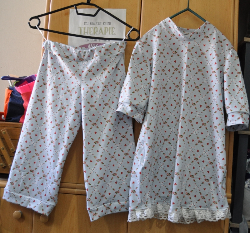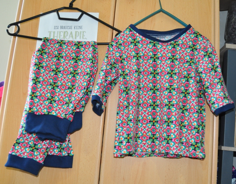 ..für Kinder in Größe 140 hellblau und 128/134 in rotbunt, Oberteile von mir und die hellblaue Hose ist Klimperklein und die rotbunte die Pumpolino Emilio
