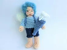 Ich habe hier eine Version für Mädchen und eine für Jungs. Der Schutzengel ist ein kleiner Lausbub (bzw. ein Lausmädel), sieht einem Schulkind ganz ähnlich, so dass das Kind sich toll mit ihm identifizieren kann. Nur durch die Flügelchen und die ungewöhnliche Haarfarbe unterscheidet es sich von einem Menschenkind. Das Engelchen hat ebenfalls eine kleine Schultüte im Arm und auf dem Rücken einen Schulranzen, den man öffnen kann, um ein paar Münzen, Mamas Telefonnummer oder einen kleinen aufmunternden Spruch hineinzustecken.