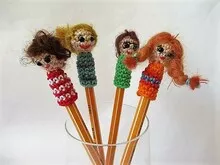 Auch Stifte-Topper sind bei Schulanfängern sehr beliebt. Hier eine Version für den Schulanfang: Schulkinder mit Leherein. Wer mag, kann ein Kind ja dem Schulanfänger ähnlich gestalten (Haarfarbe, Frisur, evtl Brille etc)