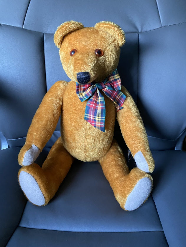 Kuscheltiere sind ein Löwe (verpackt im Keller). Ein großen Eisbär, der noch von Tochter stammt. Eine Katze und Handpuppe als Katze noch von meiner Mama.