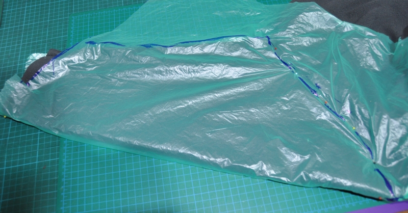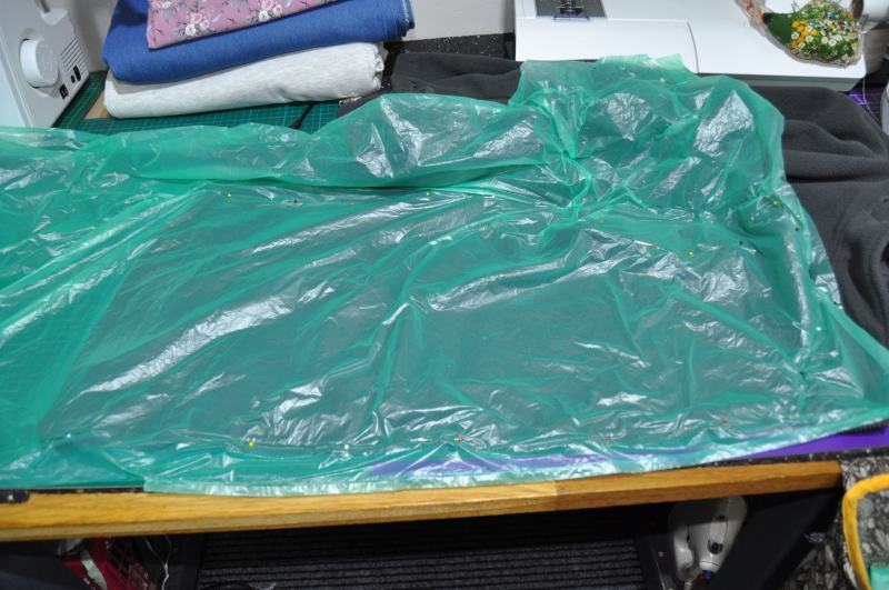 ich zeige euch wie man von einer Jacke einen Schnitt abnehmen kann. Am besten nimmt man dafür Schnittfolie, da hatte ich aber nichts mehr liegen, also bin ich her und habe 2 Plastikmüllsäcke geteilt. Wenn ihr auch solche nehmt dann da teilen wo die Schweißnähte sind, denn die stören sonst.