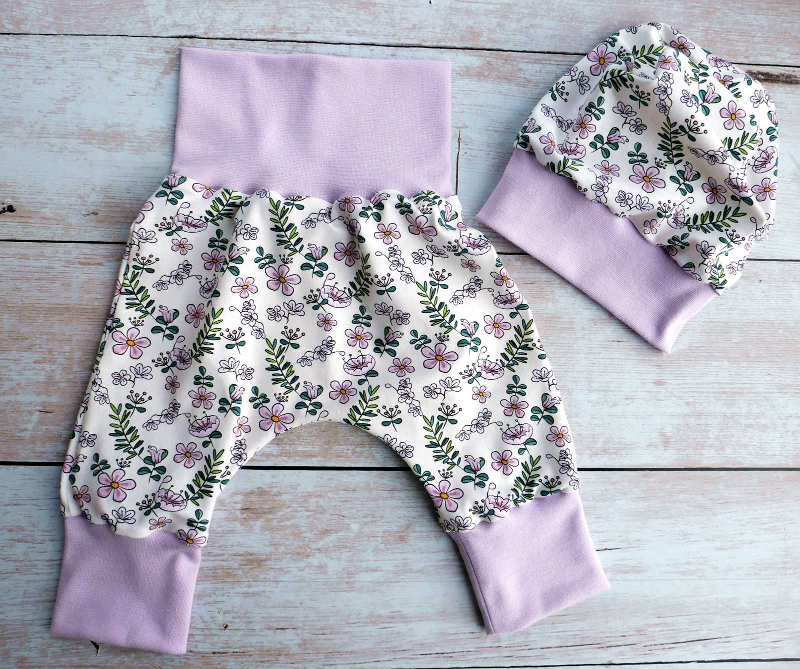 meine Schwester wird im Sommer das erste Mal Oma. Sie und die andere Oma stricken schon fleißig Babydecken. Ich möchte den jungen Eltern natürlich auch etwas Persönliches zur Geburt ihrer Tochter schenken. Deshalb kommen nun meine neuen Nähfertigkeiten zum Einsatz. Ich werde ihnen etwas zum Anziehen für die Kleine schenken. Zurzeit besteht das Set aus einer Hose und einer Mütze. Vielleicht kommt noch etwas hinzu, weil von dem Jerseystoff habe ich noch was. Aber es darf nicht zu kompliziert sein. Bis Juni habe ich ja noch Zeit.