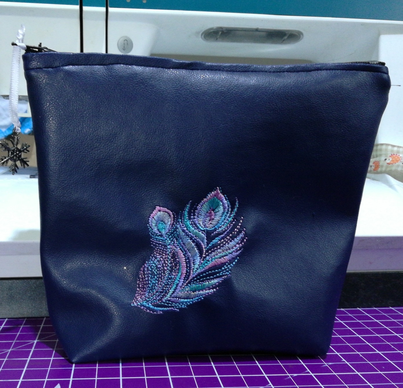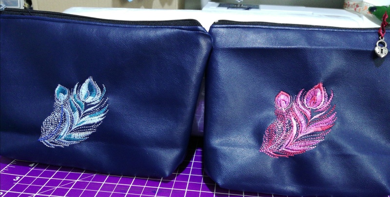 Sehr schön, liebe Inge. Die gestickte Pfauenfeder mit dem Farbverlaufsgarn ist der besondere Schmuck der Tasche. Sie wird Deiner ältesten Tochter bestimmt sehr gut gefallen.
