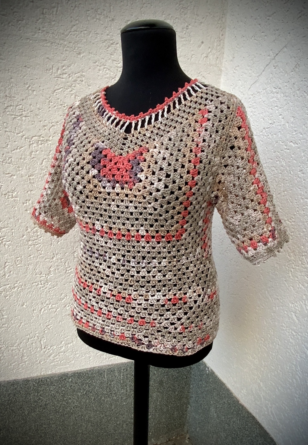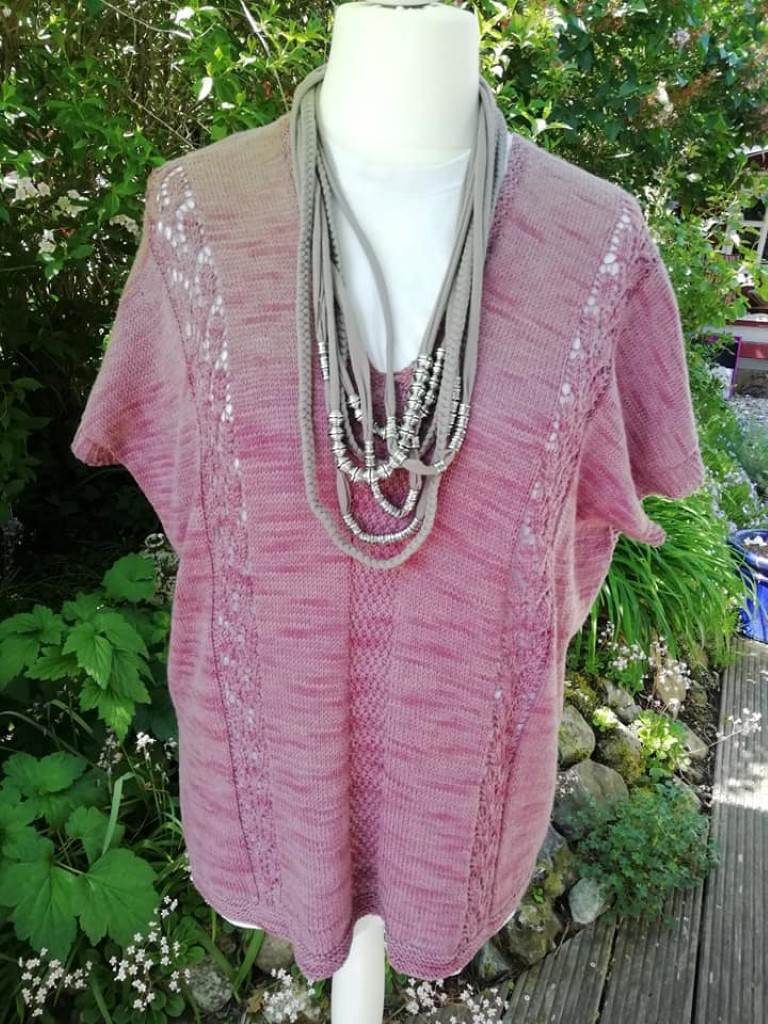 Tunika "Rosenrot" ist schön weit geschnitten und ist ideal um kleine Pölsterchen zu verstecken. Sie ist schnell und einfach zu häkeln, hat durch den Bindegürtel, die abgeschrägten Schultern und die abgerundeten Ecken jedoch Raffinesse.
