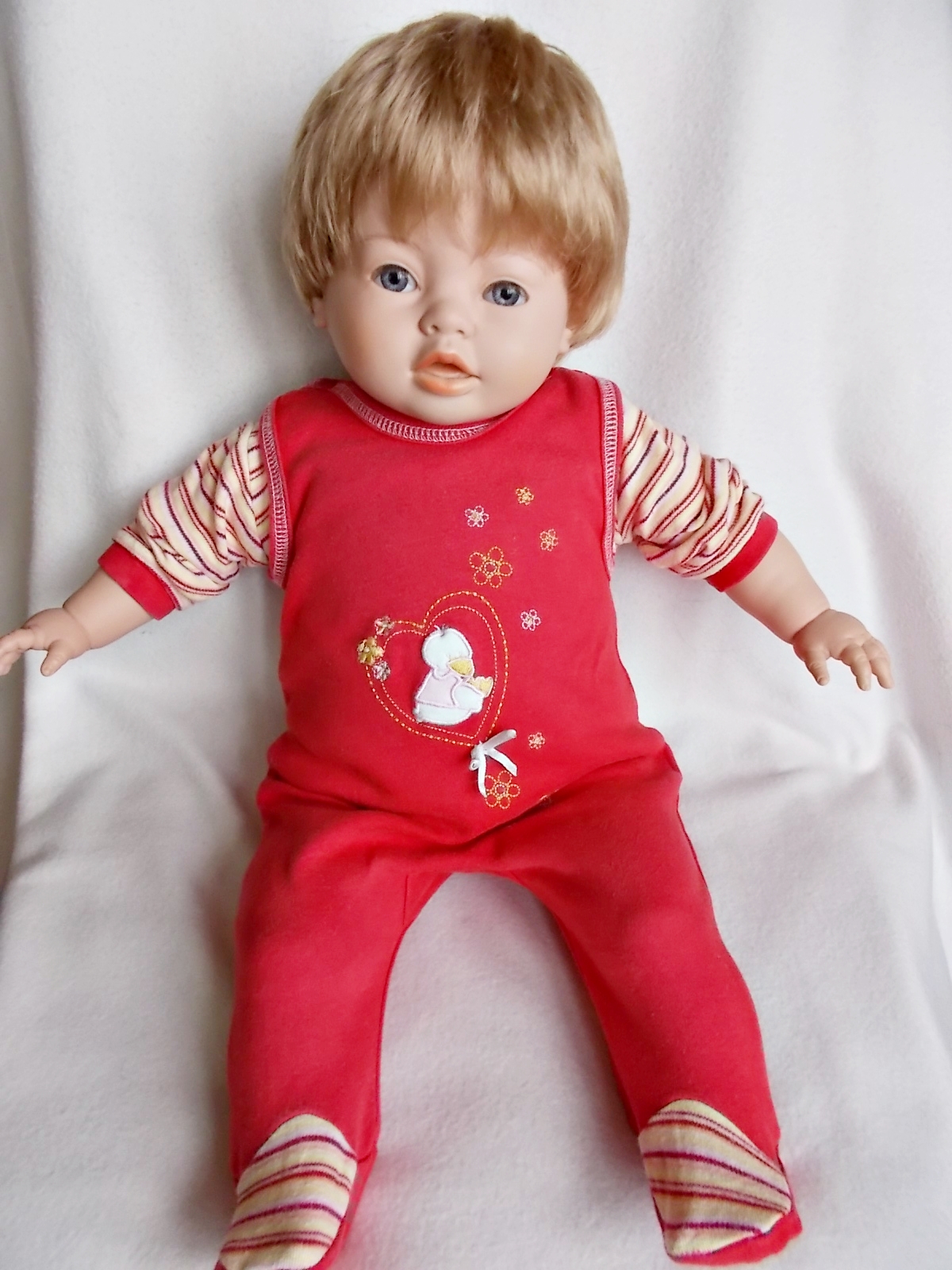Wie ihr ja schon wisst, schlägt mein Herz für Puppen und Teddys. Vor einigen Tagen noch habe ich hier geschreiben, dass nun Schluss ist. Und das hatte ich mir auch fest vorgenommen. Doch was soll ich sagen ... ich konnte wieder mal nicht widerstehen, als ich dieses süße Puppenkind in meiner Tauschbörse sah. Sie schaute mich an .. und ich war hin und weg.