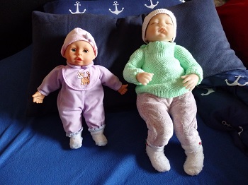 Marlies, ich werde im neuen Tauschpaket jetzt speziell nach Wolle für meine Babys schauen. Bei mir ist es so viel an Kleidung inzwischen, dass ich zwei volle Schubladen gefüllt habe. Trotzdem reicht die Auswahl noch nicht aus. Wenn Juna mal kommt, dann ist sie in ihrem Element, denn Puppen an- und ausziehen, da steht sie momentan voll drauf. Darum bekommt sie zum 3. Geburtstag jetzt auch ein Puppenbaby mit viel Kleidung.
