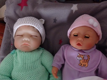 Habe ihr später mal die Rebornbabys im Internet gezeigt. Sie schwankt auch schon...