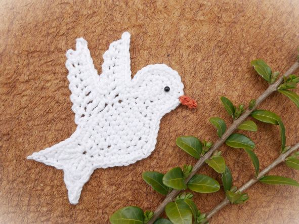 Häkelanleitung Applikation Taube, Friedenstaube, Hochzeitstaube, Hl.Geist