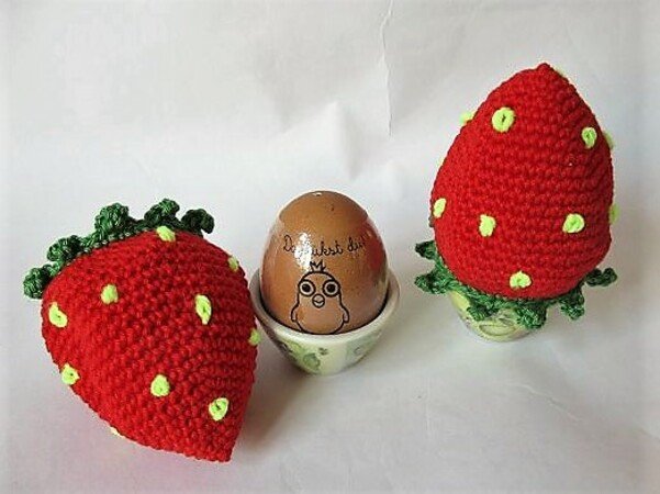 Erdbeer-Eierwärmer sind ganz einfach zu häkeln und gehören in der Erdbeerzeit unbedingt auf den Frühstückstisch, vielleicht zusammen mit einem leckeren Erdbeerjoghurt?