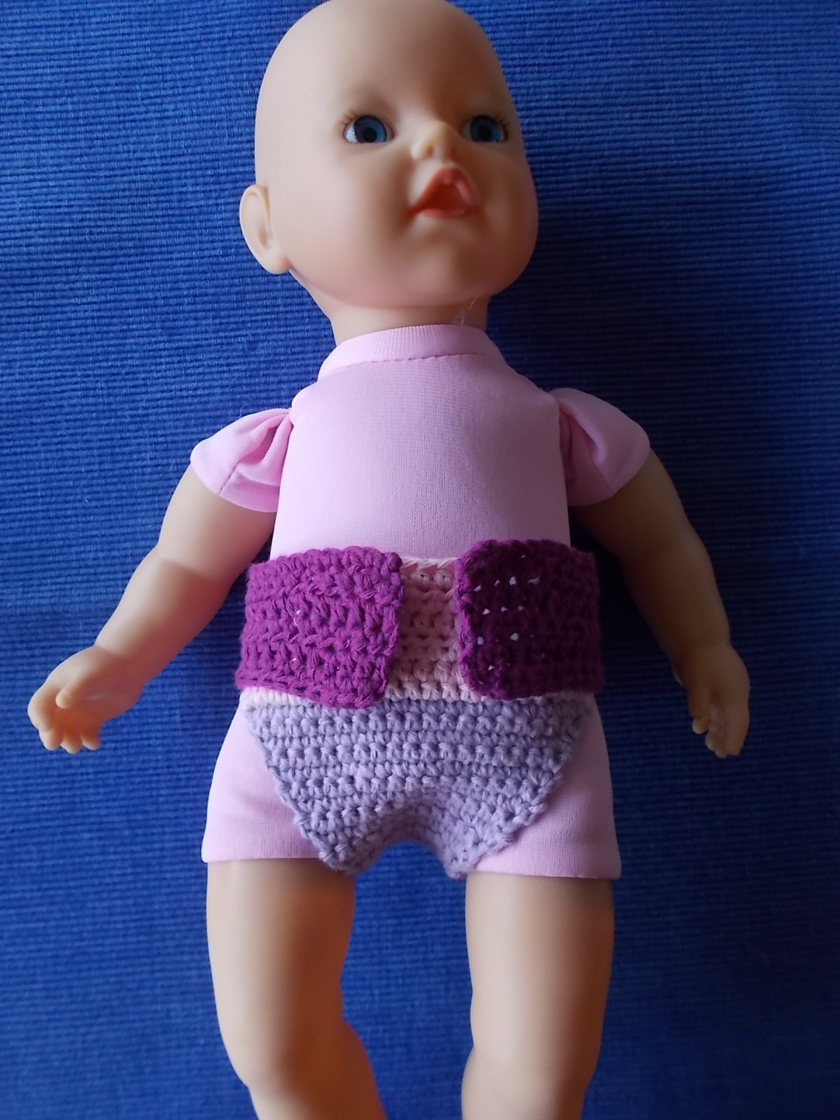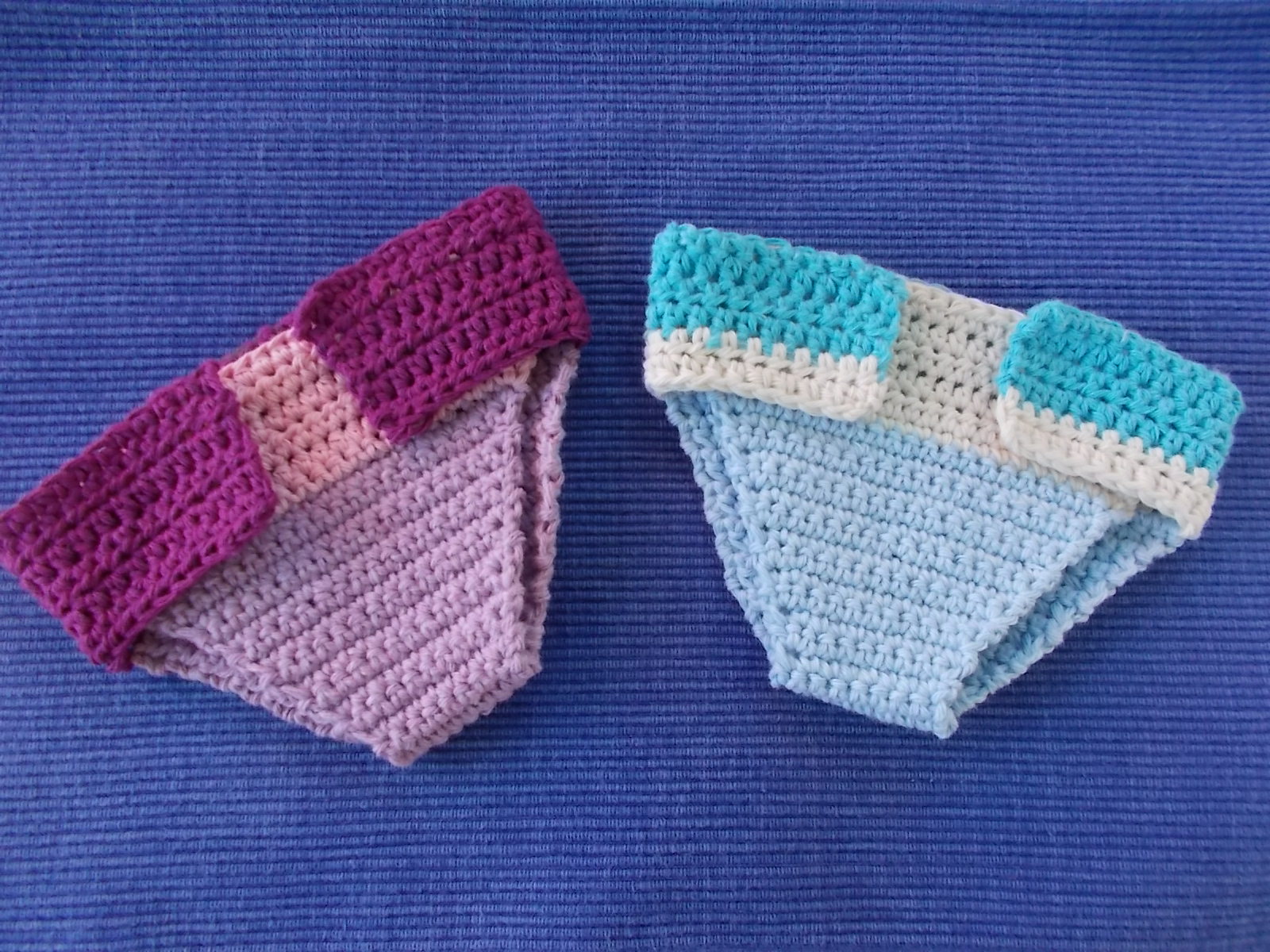 Ich hab heute für die Kleinen zwei Windeln fertig bekommen. Hier schon mal ein Foto. Dafür hab ich ein paar Reste verhäkelt. Die sind für Junas kleines Puppenbaby, ich hab die gleiche. So kann ich immer für Nachschub sorgen. Wenn die Klettverschlüsse dran sind, folgt ein Foto mit Model.
