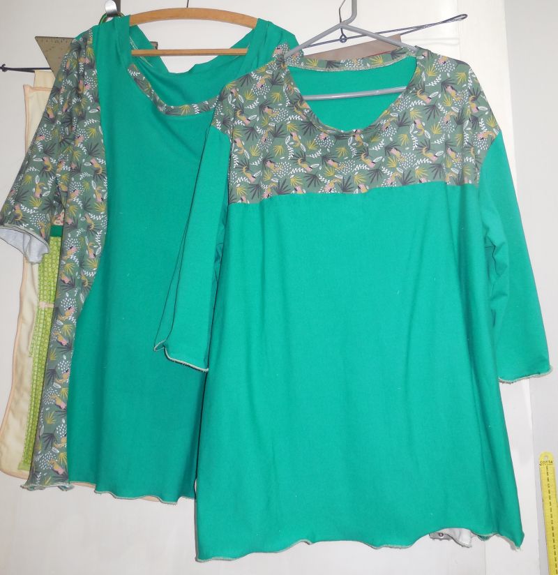 wie hier beim Kragen, man kann aber auch nur mit der Overlock einen Saum einfassen, wenn man zB einen Rollsaum macht, wie hier bei den Shirts von mir. Den Rollsaum kann man auch leicht mit einer normalen Nähmaschine machen, den ZZStich eng stellen und dann den Stoffe leicht anziehen beim nähen, dann rollt sich der Saum so wie auf dem Bild, ich mochte diese Rollsäume ne Zeitlang ganz gerne.