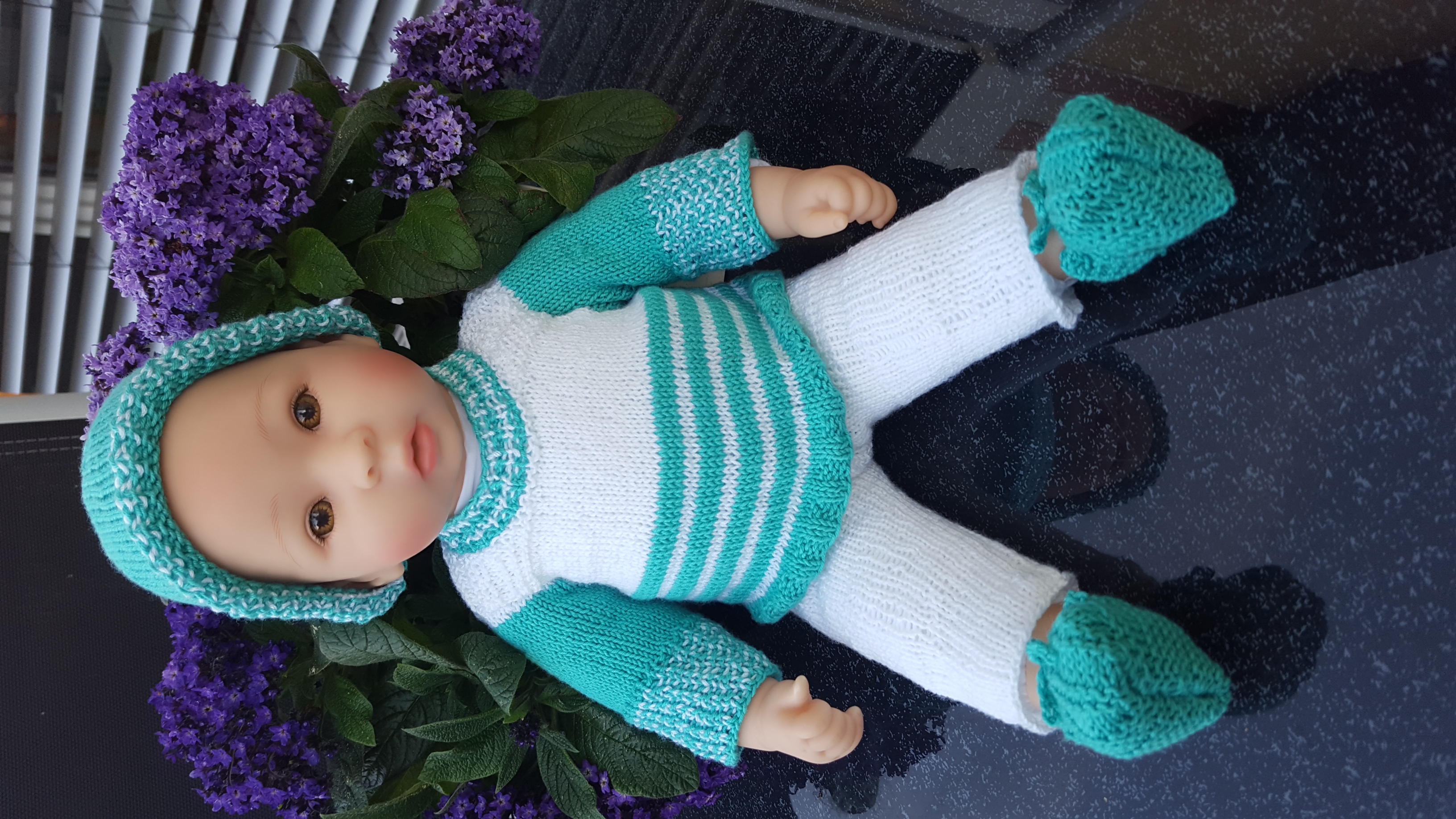 Die Hose ist auch eine AL von ihr. Ich habe nur das Muster ein wenig abgeändert. Den Rest habe ich nach eigenen Ideen, auch für Finn, gestrickt.