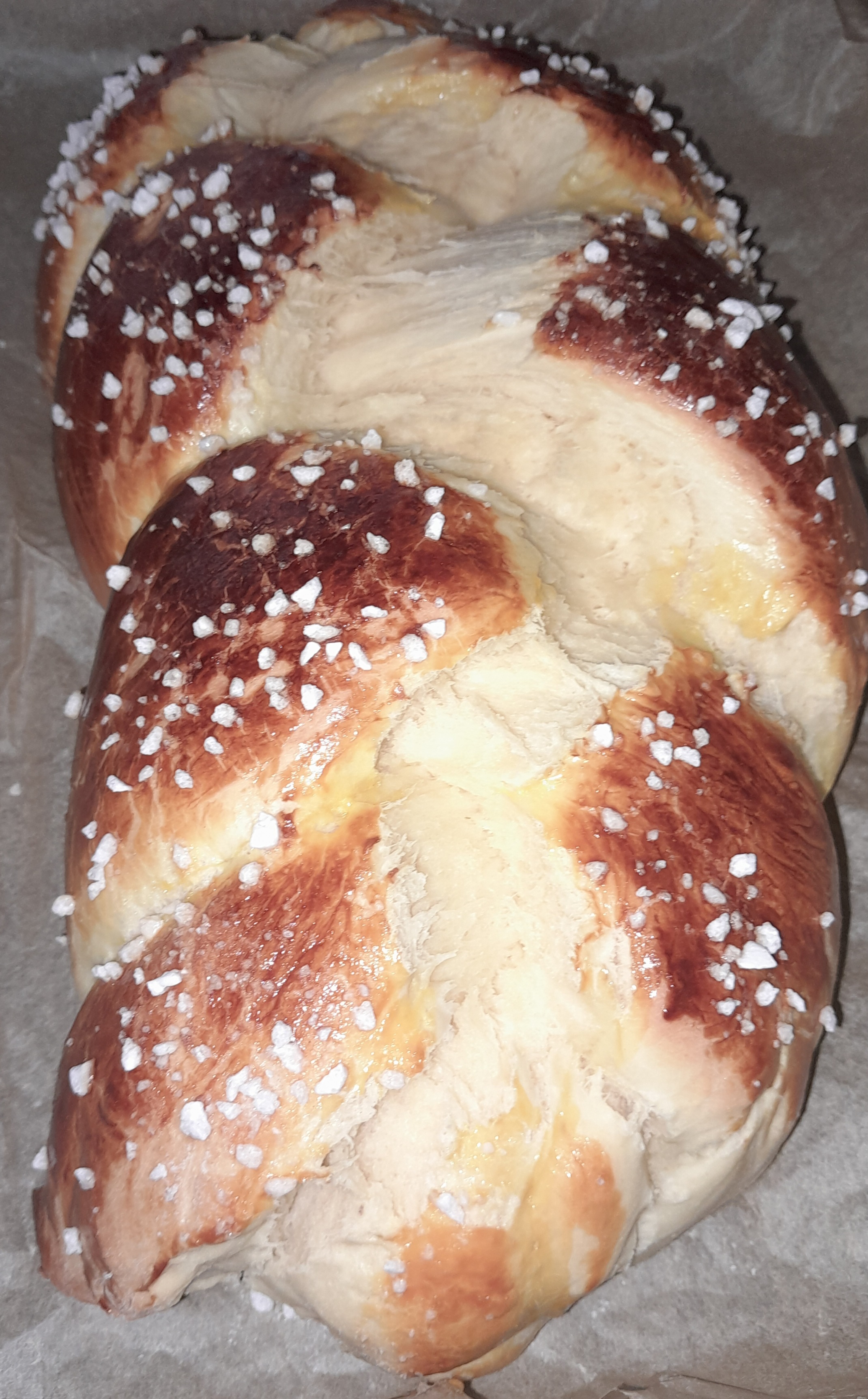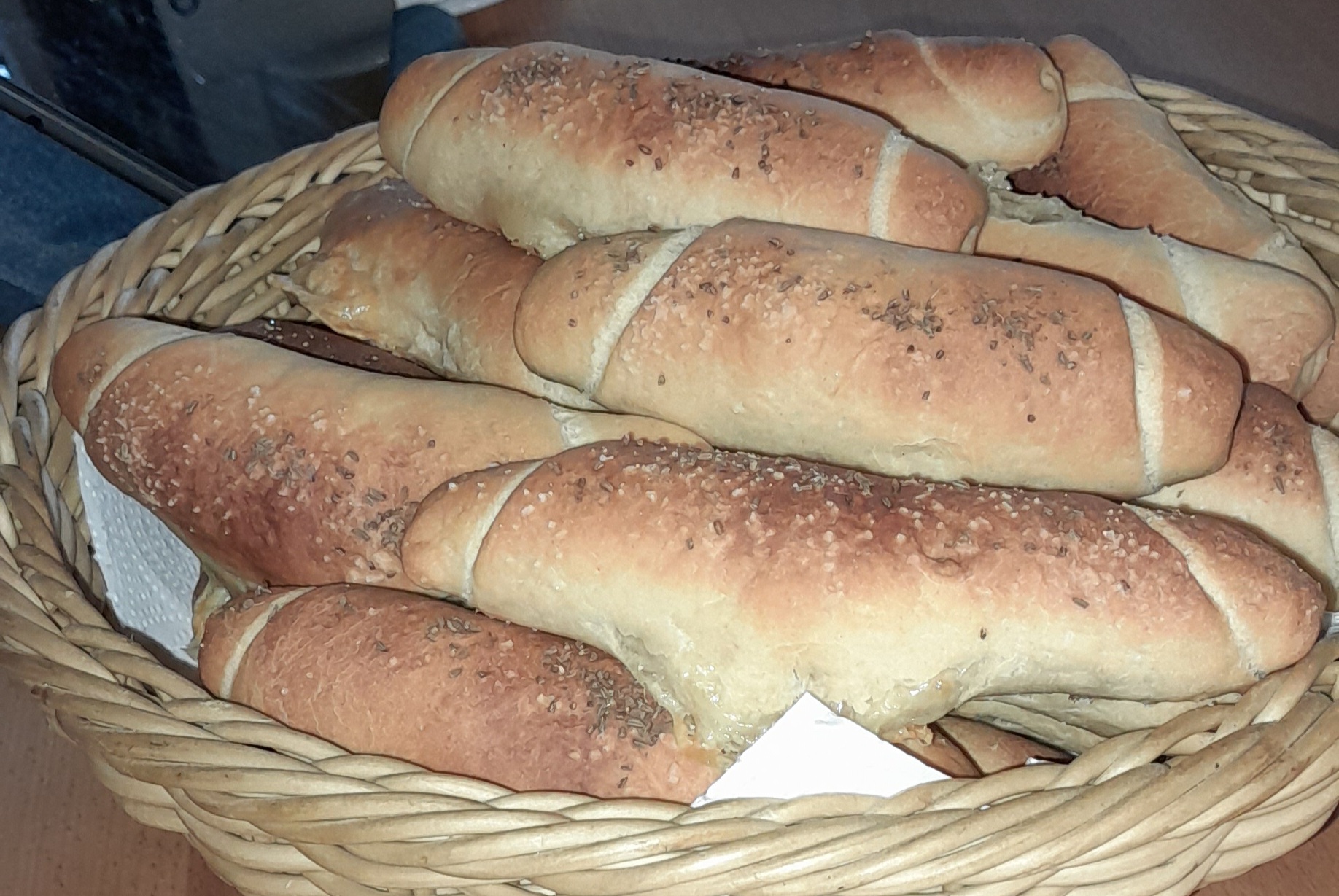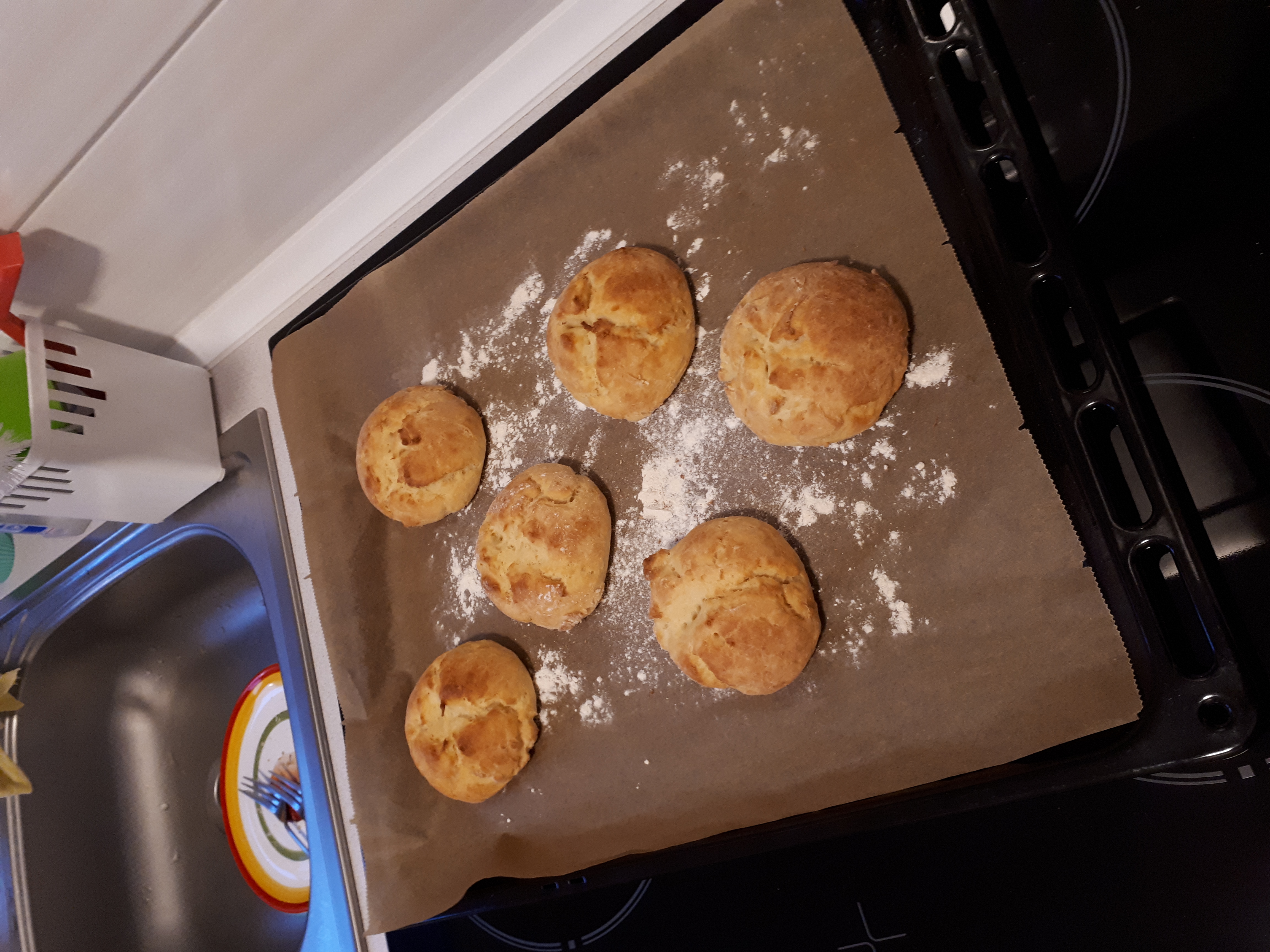mein Mann hat heute wieder gebacken, unser Brot für kommende Woche und für heute Abend Käse-Schinken-Stangerl .