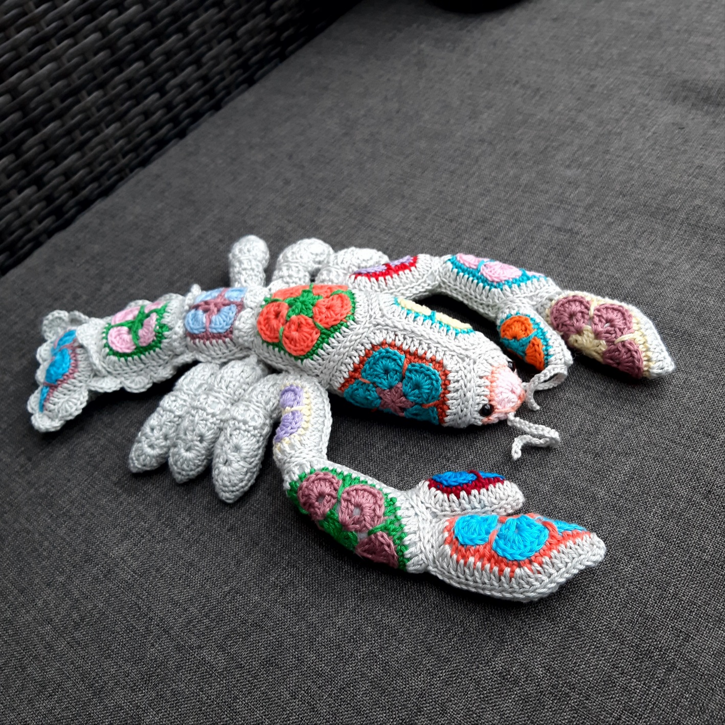 I would like to introduce Hugo. Hugo is new in my store. He is crocheted with African Flowers.