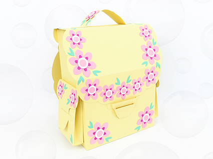 Der Ranzen ist aus Fotokarton gefertigt und ca. 21 x 21,5 x 10 cm groß (ich habe ohne Griff und Gurte gemessen). Er ist nicht ganz so einfach nachzuarbeiten und eher für erfahrene Bastler geeignet.