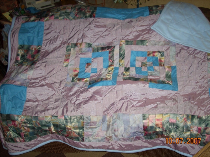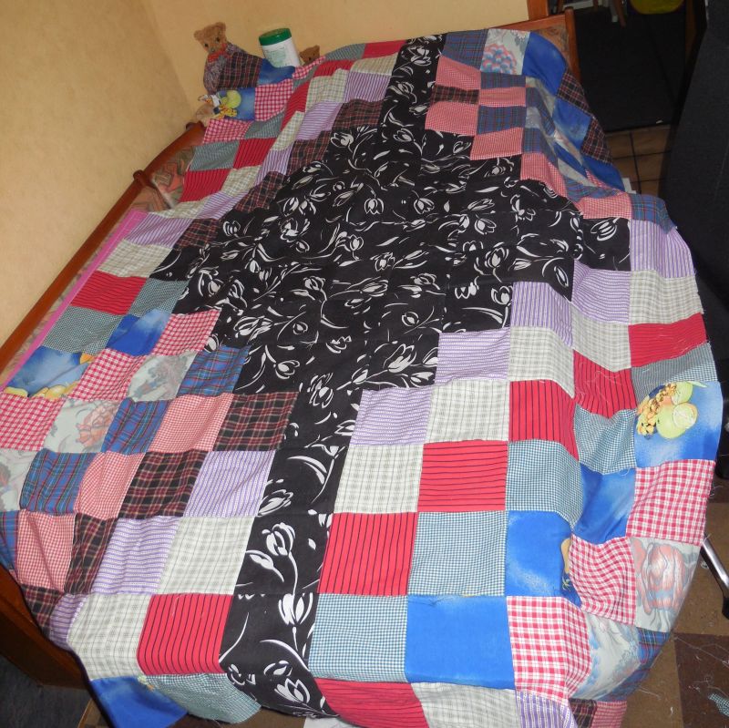 Bild1   ein Quilt aus alten Gardinen für eine meiner Töchter, die Stoffe brachte sie mir mit der bitte da eine Decke draus zu nähen