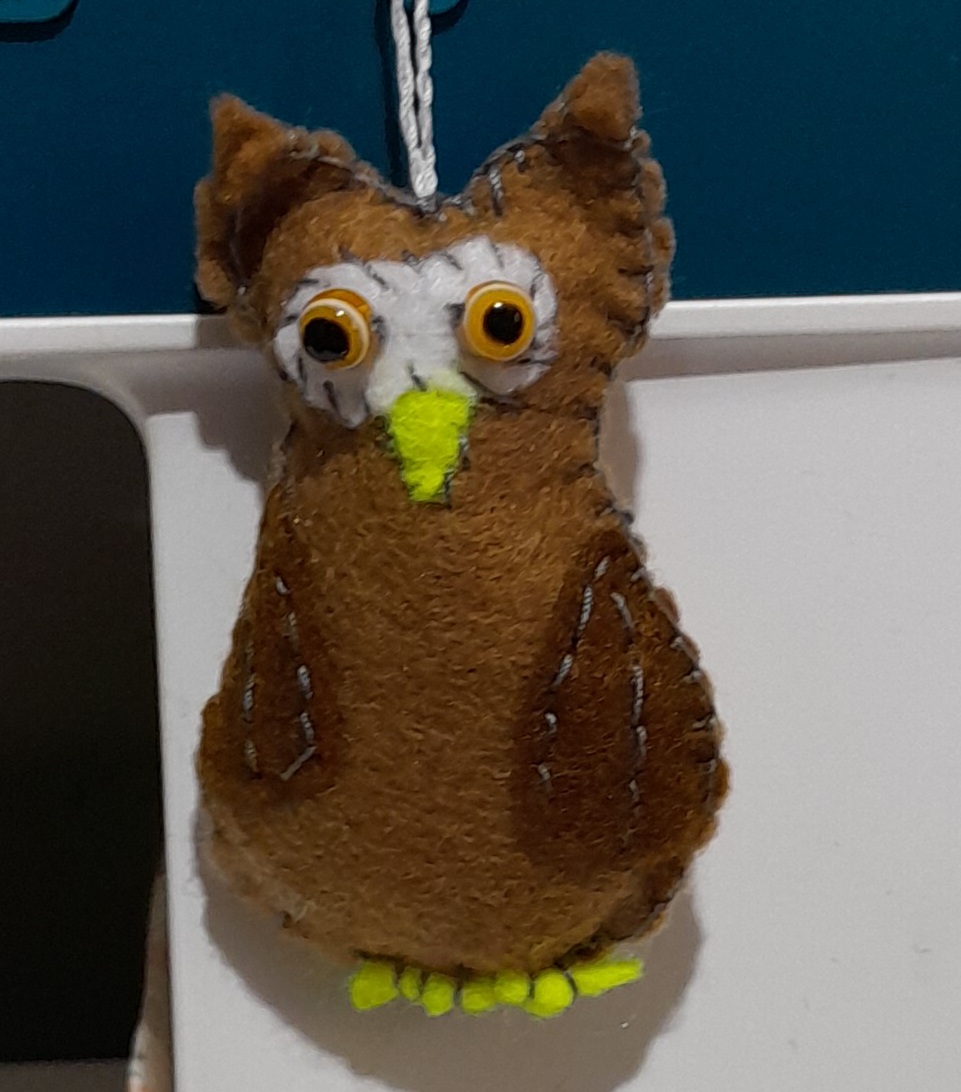 Handgenäht, für meinen Enkel, er liebt Eulen sehr. Die Eule hat ca 7cm Höhe und wurde heute Nachmittag von mir entworfen und genäht