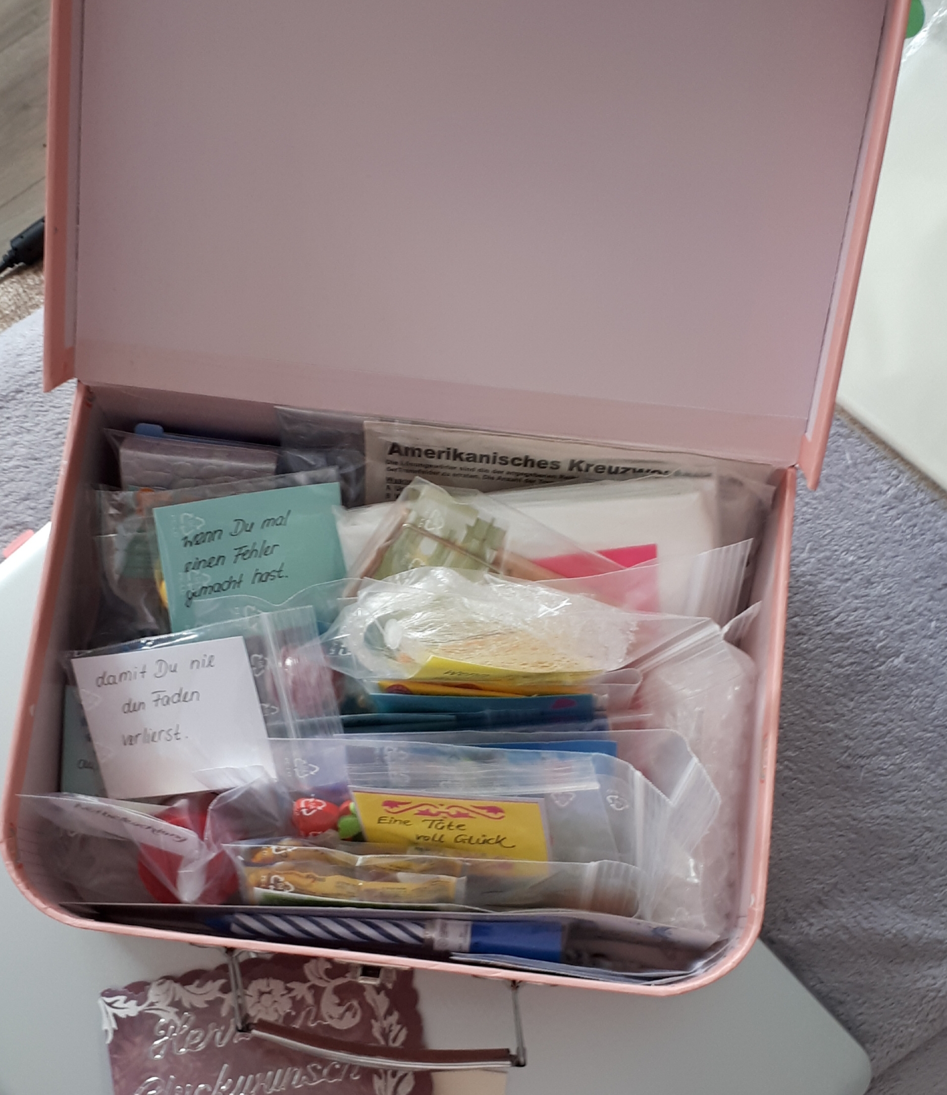 Andrea, das ist eine super schöne Idee. Ich liebe ja solche Überraschungskisten mit vielen kleinen darin zum Auspacken.
