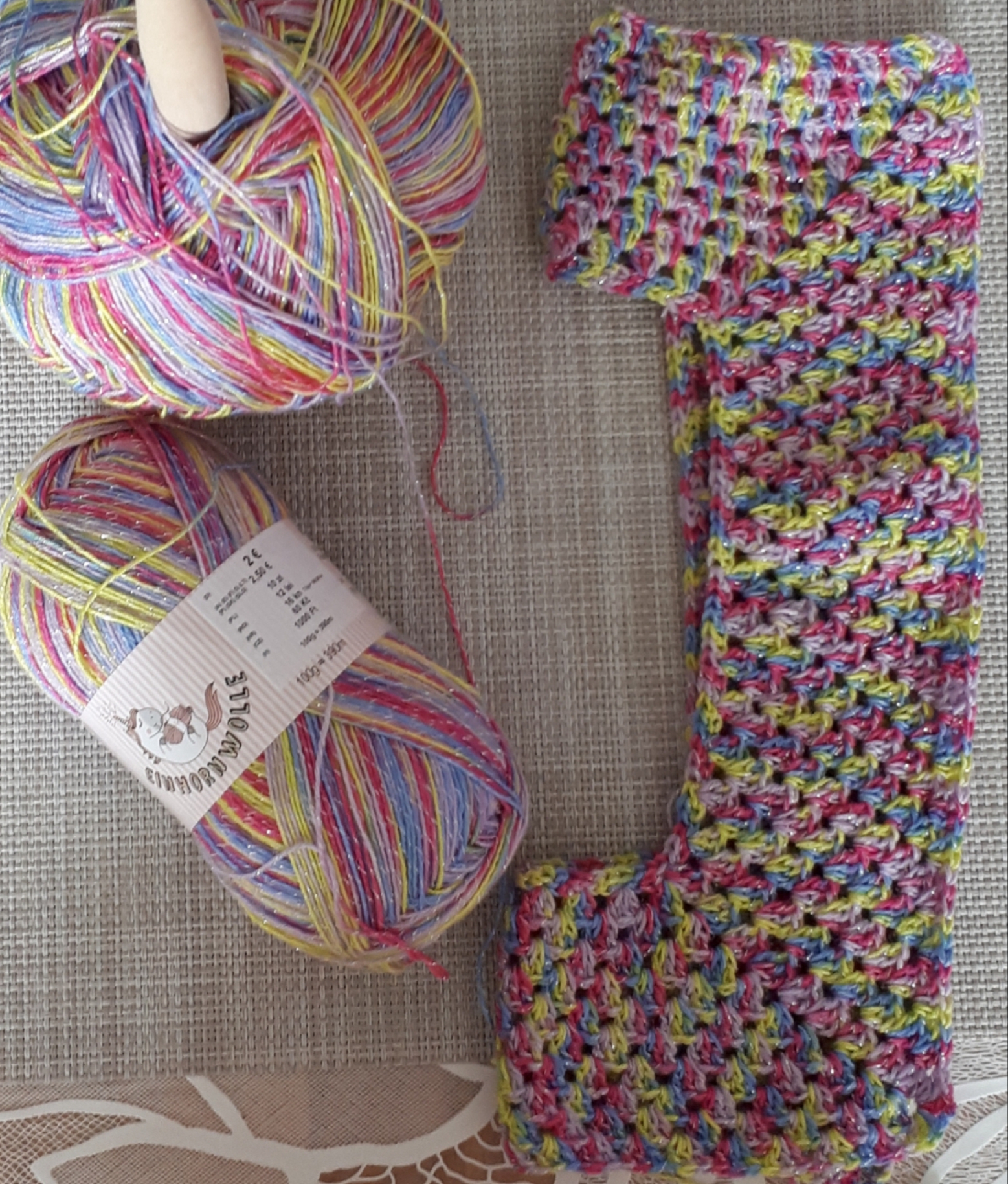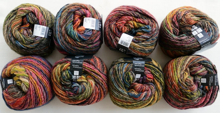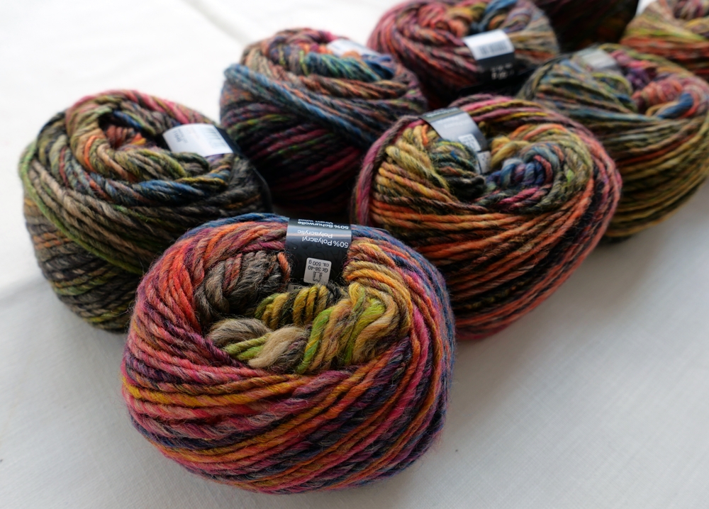 Die Wolle ("Mezzo" von Lana Grossa) konnte ich mit Nachlass im Internet bekommen, weil sie leider nicht mehr hergestellt wird. Das finde ich total schade, denn sie ist ganz weich und kratzt gar nicht. Seht Ihr die schönen bunten Farben? Jedes Knäuel schaut anders aus, obwohl es die gleiche Farbnummer ist. Ich bin sehr gespannt, wie sie verstrickt ausschaut.