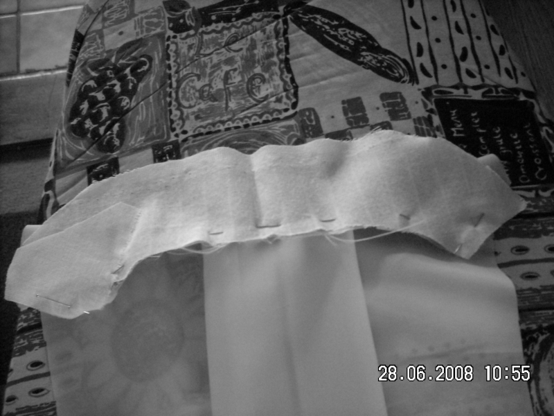 Beim Kragen und den Armlöchern verwende ich gerne Textile Bügeleinlagen, wenn man die dann im schrägem Fadenlauf zuschneiden legen die sich optimal um die Kurven ohne grss Falten zu werfen oder zu reißen.