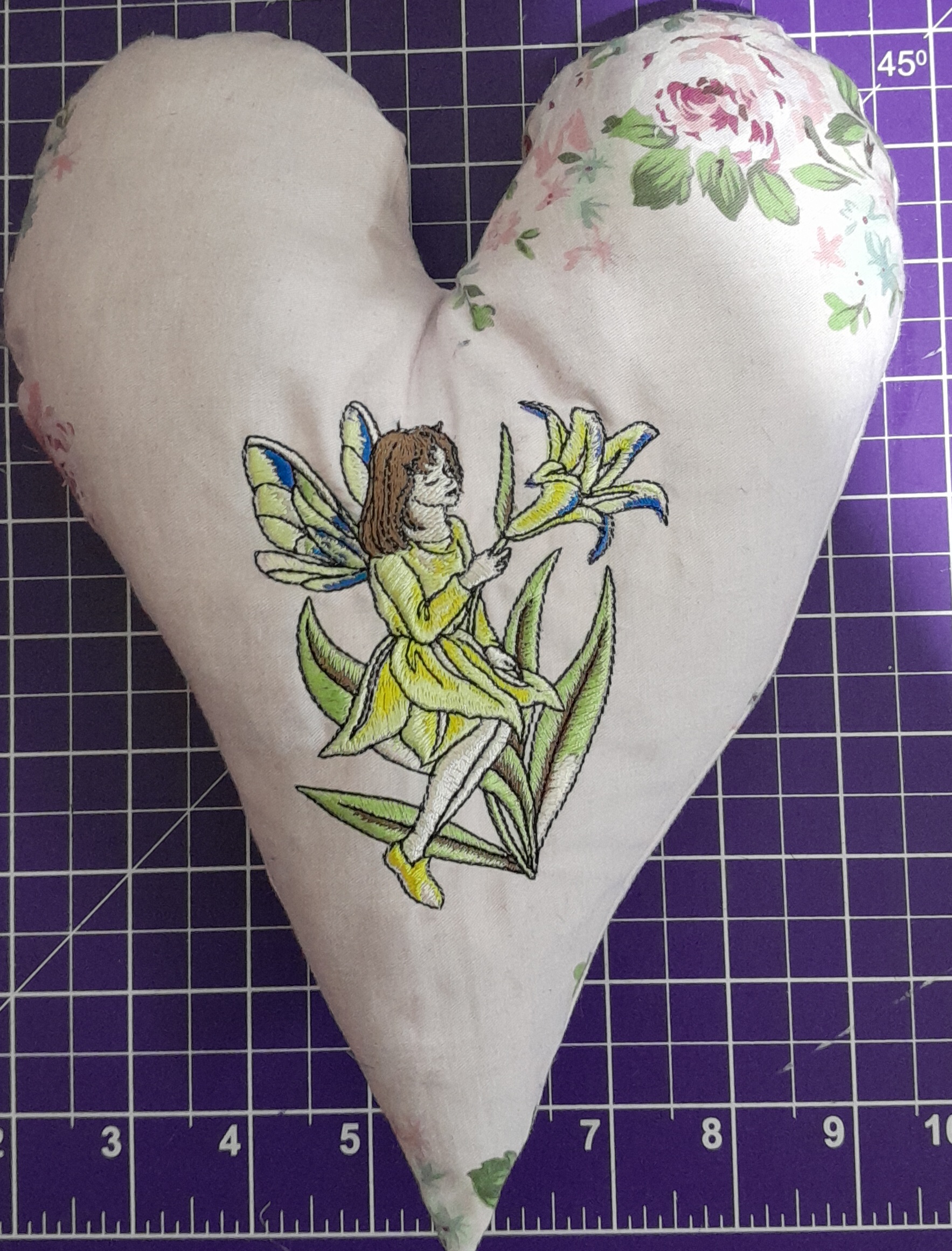 Alles sehr zart: Die Blumenfee mit den zarten Flügeln auf dem kleinen Herz - fein gemacht, liebe Inge. Das findet bestimmt schnell einen neuen Besitzer.