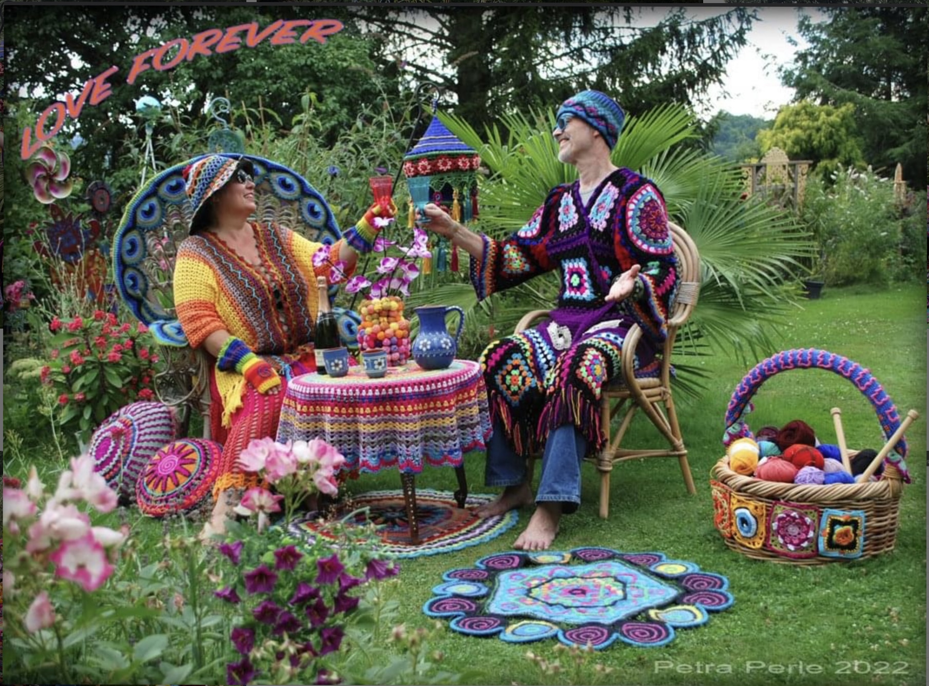 Dir und deinem Mann wünsche ich alles Liebe zum Hochzeitstag und noch viele hübsche bunte Ideen. Du hast mit deinem Mann das große Los gezogen, dass er sich von dir sogar so hübsch einstricken lässt. Super!