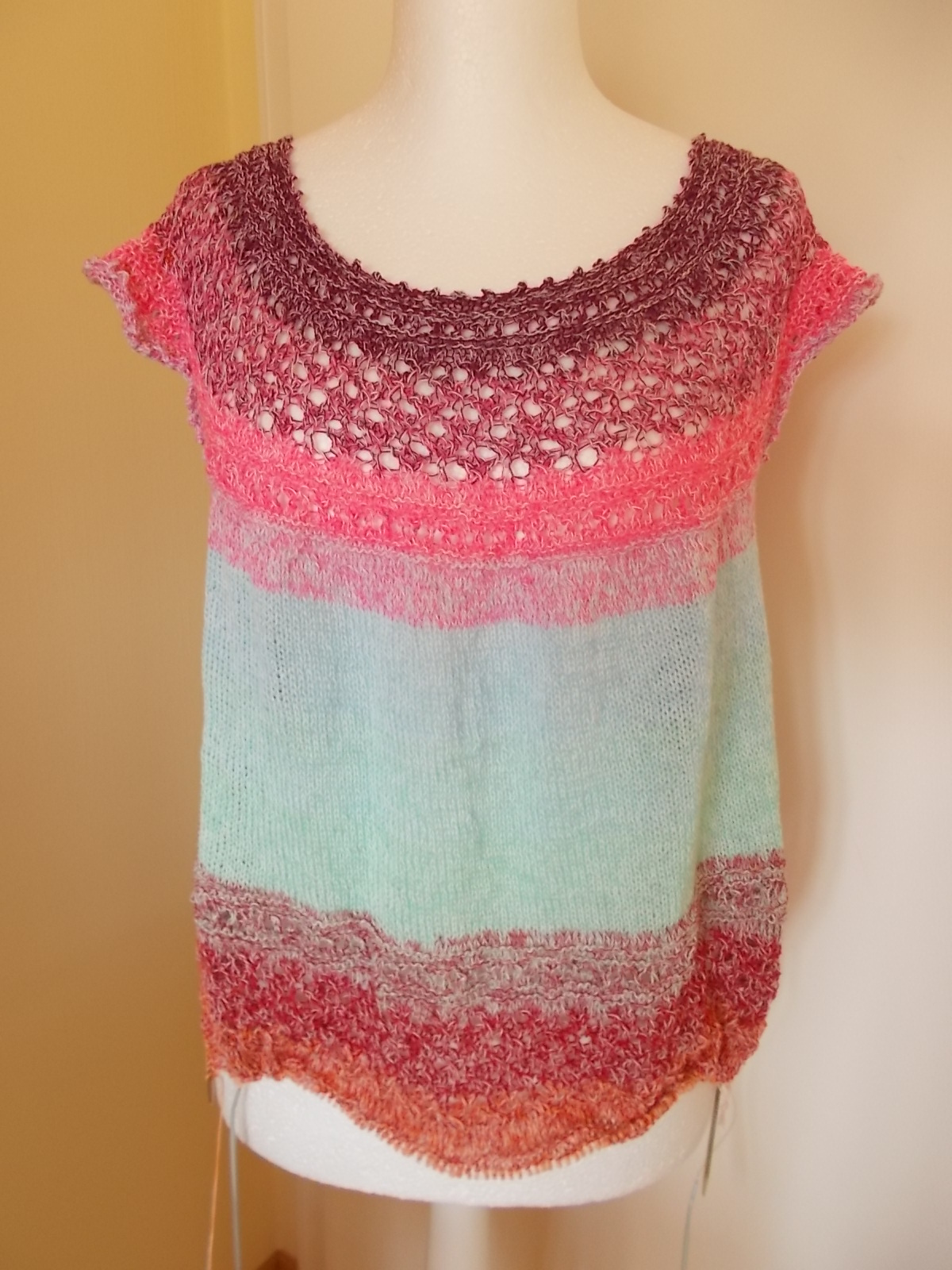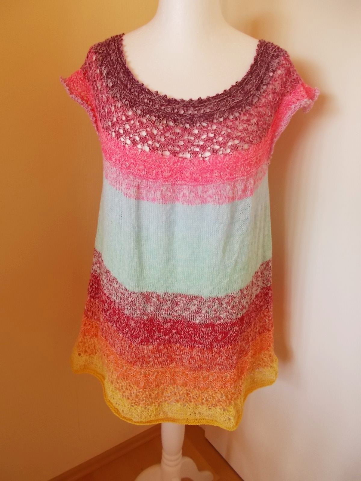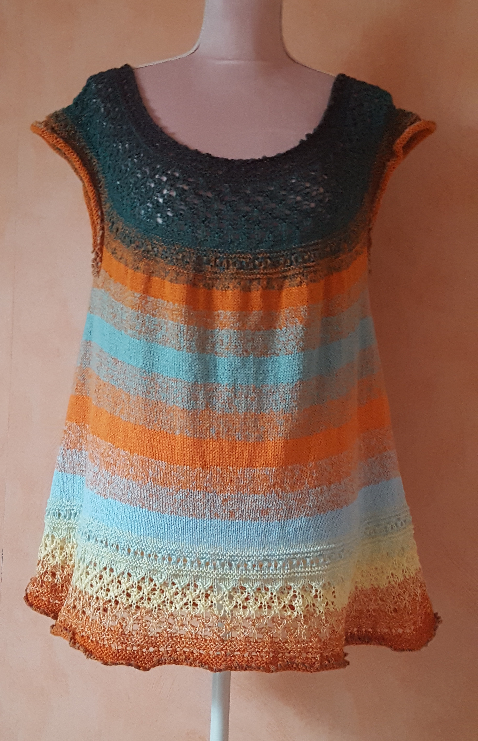 Monika, die Farben deiner Tunika sind sehr schön. Auf dem Bobbel kann man sich das oft nicht so recht vorstellen. Das Zurückstechen beim Lochmuster kenne ich auch. Ist mir auch passiert.