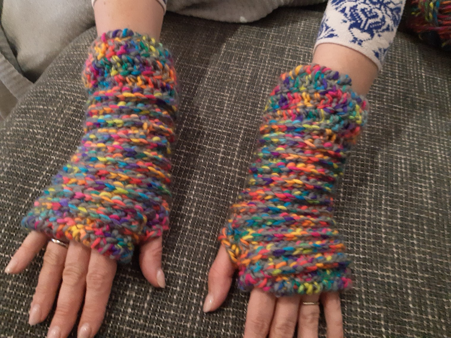 Marlene, deine passende Mütze und Stulpen sind schön geworden, die Farbe ist auch hübsch.
