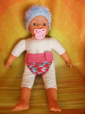 Kleine Reste eignen sich super, um dem Puppenkind (43-50 cm) eine Windel zu häkeln. Da ist jede kleine Puppenmutti ganz begeistert und will bestimmt mehr davon.