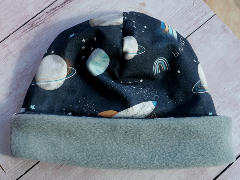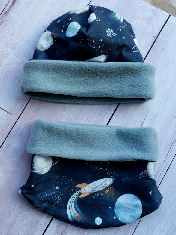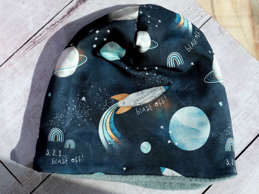 Wende-Beanie und Wende-Loop Set 1 - Raketen und Weltall